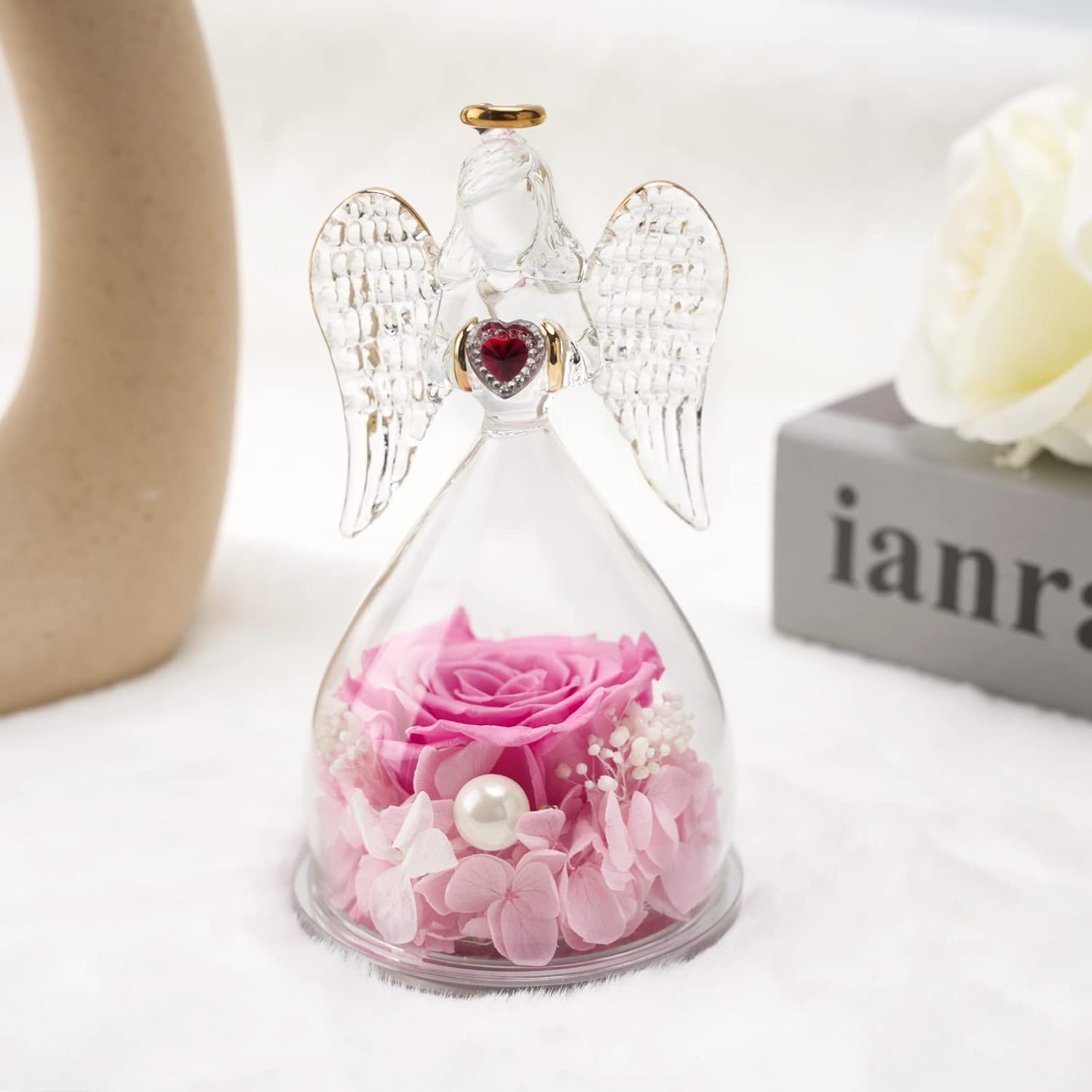 Miofula Cadeau Maman Fete des Meres Rose Eternelle sous Dôme Ange